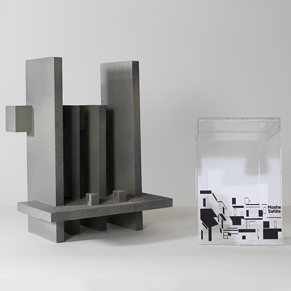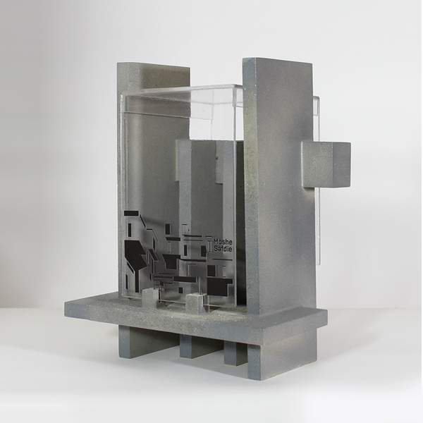 Box / Package encompassing Moshe Safdie's project; Habitat 67. The box's design was inspired by the versatility found on Habitat 76 shape and form. Brutalism was also a source of inspiration. The boldness of the concrete combine with the lightness of glass create a harmonious balance to th box astetics. The box is also modular which can be used not only as a decoration piece but also as a stand for small books and objects.